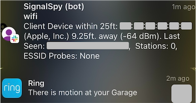 My goal was to capture local wireless signals and create a secondary data point for alerts triggered by motion cameras and other home alarms. Best case scenario, this could provide information about the unwanted visitors device (aka smartphone) such as: