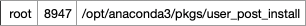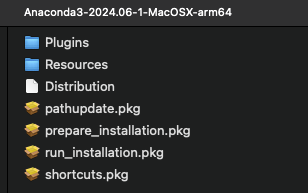 This vulnerability is fixed in Anaconda3 2024.06-1. The user_post_install.pkg is no longer included in the installation package, as \demonstrated below: