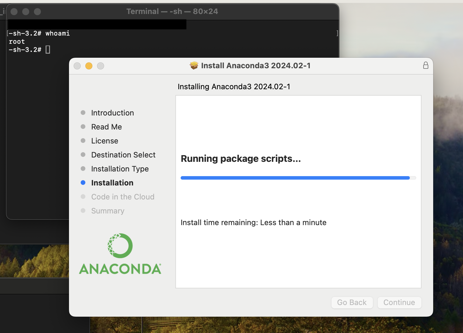 After expanding Anaconda3-2024.02-1-MacOSX-arm64.pkg, I found a containing prepare_installation.pkg which had a Bill of Materials (BOM) entry for our injected script: